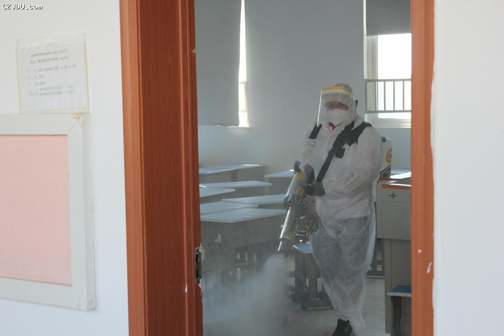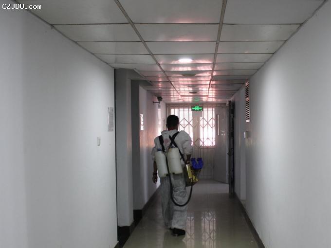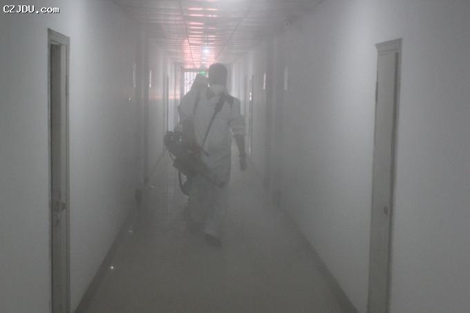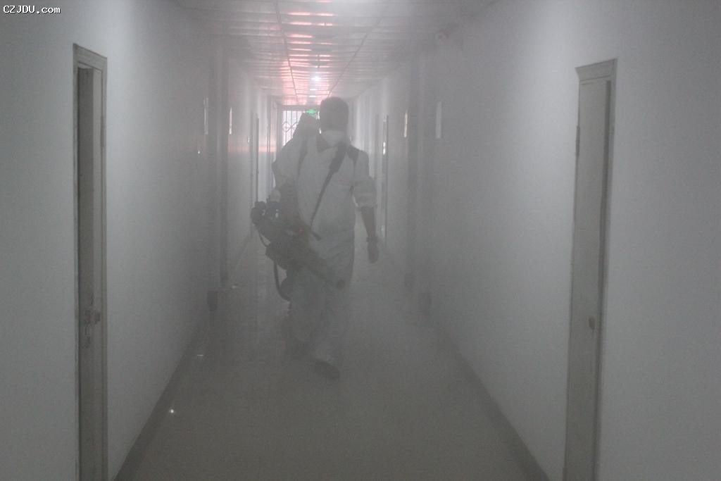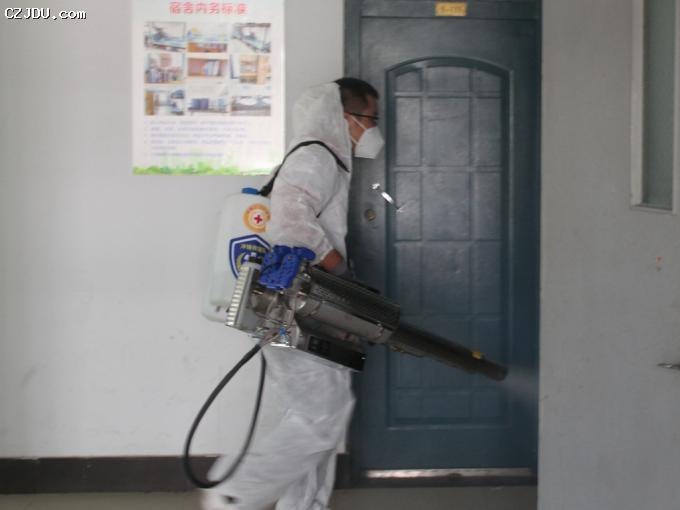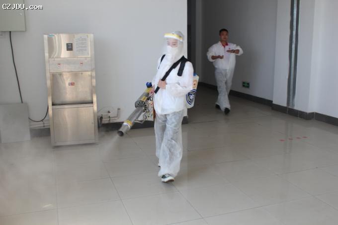 為有效預(yù)防新型冠狀病毒肺炎疫情,全力做好新學(xué)期疫情防控工作,保障全院師生身體健康安全,2021年9月26日上午,由后保處負(fù)責(zé),天寧區(qū)紅十字應(yīng)急救援隊(duì)承辦,一行8人攜專業(yè)消殺設(shè)備對我院重點(diǎn)場所進(jìn)行全面消殺作業(yè)。