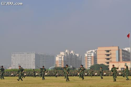 隨著分列式進(jìn)行曲的響起,各方陣踏著矯健的步伐,整齊劃一地邁過主席臺,接受學(xué)院領(lǐng)導(dǎo)和承訓(xùn)部隊首長的檢閱。表演方隊隨后進(jìn)行了精彩的軍體拳和棍術(shù)表演。
