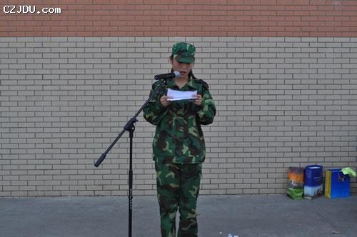 軍訓(xùn)代表新生數(shù)控4班的陳志新發(fā)言。她向全體受訓(xùn)學(xué)員表示,在今后的學(xué)習(xí)和生活中,一定嚴(yán)格按照軍人的標(biāo)準(zhǔn)要求自己,努力學(xué)習(xí)科學(xué)文化知識,為社會貢獻(xiàn)自己的力量。