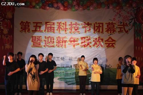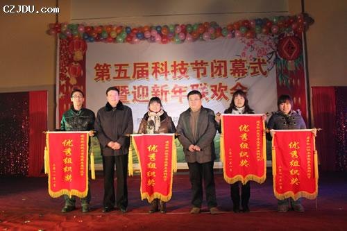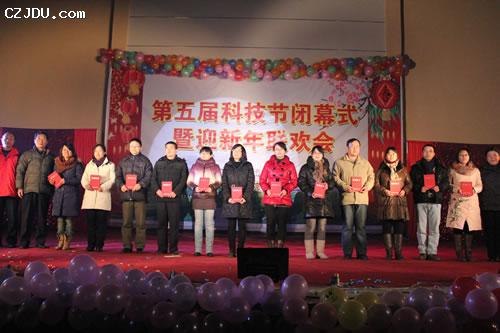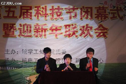1月7日下午,第五屆大學(xué)生科技節(jié)閉幕式暨迎新年聯(lián)歡會在報告廳隆重舉行。至此,歷時1個多月的第五屆大學(xué)生科技節(jié)正式落下帷幕。院長王榮成、黨委書記范永法、副院長丁高明、副院長吳如漪、院長助理孫利兵、學(xué)工處戎釗華處長、教務(wù)處處長許心國、產(chǎn)學(xué)研合作處沈志勤處長以及各系部負(fù)責(zé)人和部分師生出席了閉幕式。