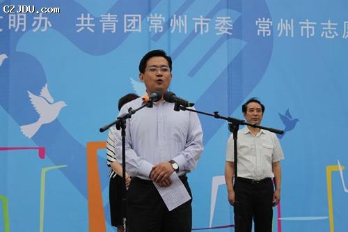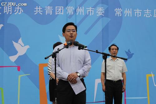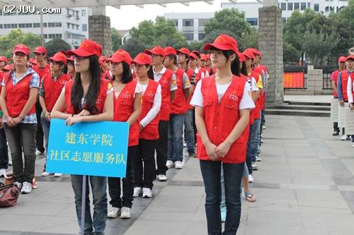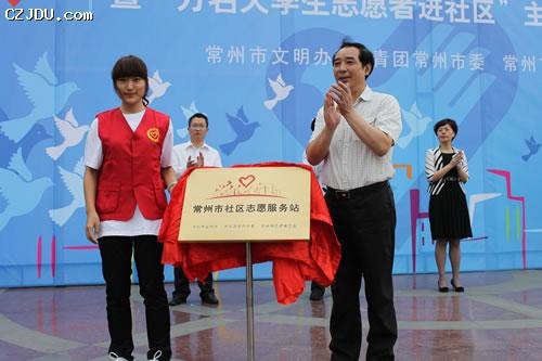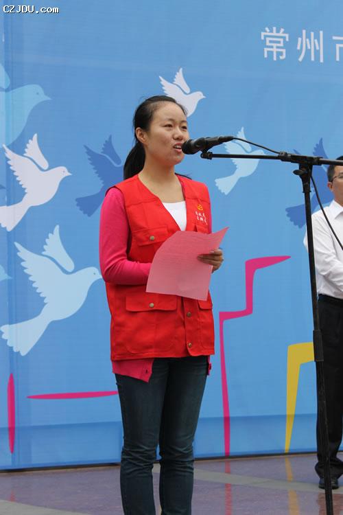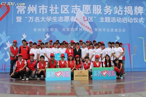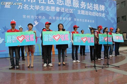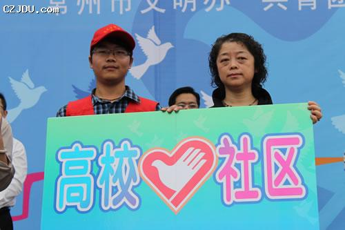 啟動(dòng)儀式上,我院蔣雯同學(xué)代表志愿者宣讀了“萬名大學(xué)生志愿者進(jìn)社區(qū)”的倡議書,市領(lǐng)導(dǎo)也向10所高校的志愿者代表授旗。