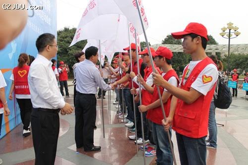 現(xiàn)場領(lǐng)導(dǎo)為志愿者服務(wù)隊(duì)授旗