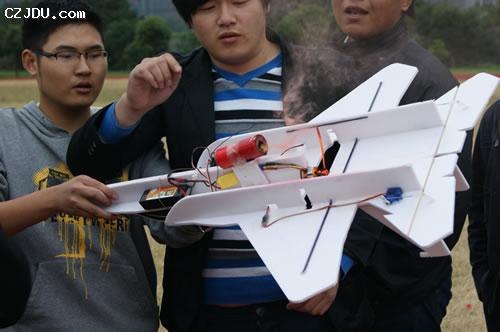 此次模型表演共2個(gè)小時(shí),參展了6架飛機(jī),1輛汽車。自制仿殲-20型號(hào)飛機(jī)首先飛天,在操場(chǎng)的高空俯沖異常精彩,操作員的高超操縱技能令同學(xué)們驚嘆不已,越野車模型做出的各種高難度動(dòng)作和表現(xiàn)出來的良好性能令全場(chǎng)掌聲雷動(dòng)。隨后其他的飛機(jī)模型也一一上陣,最驚艷的一刻當(dāng)屬三架飛機(jī)攜煙霧一起飛行,在天空劃出美麗的弧線,贏來了現(xiàn)場(chǎng)同學(xué)的陣陣歡呼。