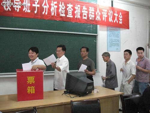 會(huì)上,首先由黨委書記范永法同志對(duì)分析檢查報(bào)告進(jìn)行全面的匯報(bào),隨后評(píng)議代表整齊有序的進(jìn)行評(píng)議投票,大家緊緊圍繞報(bào)告對(duì)科學(xué)發(fā)展的認(rèn)識(shí)深不深、問題查找得準(zhǔn)不準(zhǔn)、原因分析得透不透、發(fā)展思路清不清、工作措施可行不可行等方面,進(jìn)行了全方位的評(píng)議。根據(jù)統(tǒng)計(jì),群眾評(píng)議的各項(xiàng)指標(biāo)好、較好的均在90%以上,對(duì)于尚待改進(jìn)的方面,學(xué)院領(lǐng)導(dǎo)班子將會(huì)進(jìn)一步聯(lián)系實(shí)際,務(wù)求實(shí)效,把我院和各個(gè)部門等不同層面的問題梳理出來,并按照我院當(dāng)前與長(zhǎng)遠(yuǎn)結(jié)合的要求,分類研究解決,落實(shí)各項(xiàng)具體措施,以確保取得實(shí)實(shí)在在的成效。