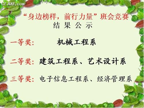 經(jīng)過激烈的角逐和公平公正的評判,班會競賽評選出了名次,結(jié)果公布如下: