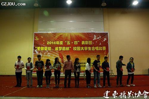 機(jī)械系團(tuán)總支書記劉海翔、經(jīng)管系團(tuán)總支副書記郭燕給社團(tuán)活動積極分子頒獎