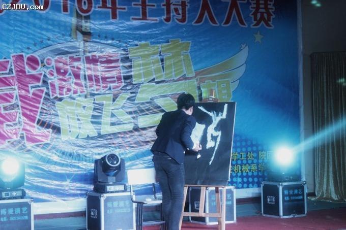 選手楊少飛在短短2分鐘之內(nèi)進(jìn)行現(xiàn)場作畫,驚艷全場,模擬主持環(huán)節(jié)發(fā)揮不俗,獲得了最佳人氣獎。