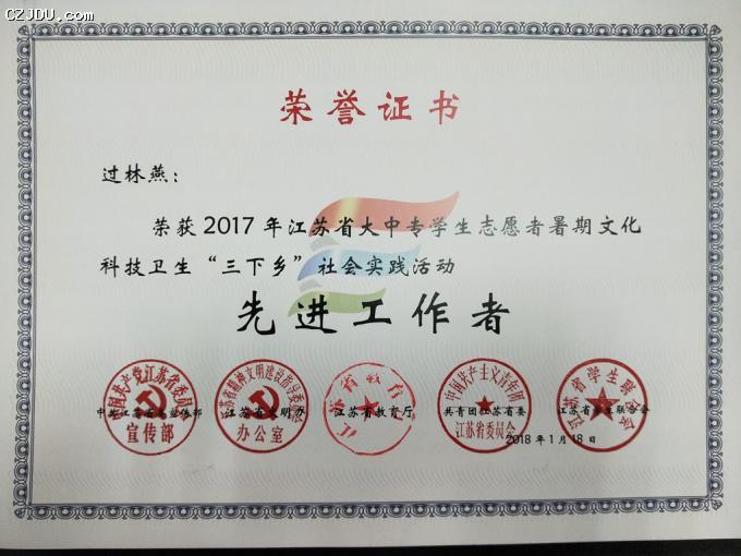 近期,江蘇省委宣傳部、省文明辦、省教育廳、團省委、省學(xué)聯(lián)通報表揚了2017年江蘇省大中專學(xué)生志愿者暑期文化科技衛(wèi)生“三下鄉(xiāng)”社會實踐活動優(yōu)秀團隊、先進工作者和先進個人。我院青年志愿者協(xié)會的“筑夢西倉,振翅翱翔”志愿者項目榮獲優(yōu)秀團隊榮譽稱號。團委書記過林燕榮獲2017年江蘇省大中專學(xué)生志愿者暑期“三下鄉(xiāng)”社會實踐活動先進工作者榮譽稱號。15級商務(wù)英語班學(xué)生曹琳榮獲2017年江蘇省大中專學(xué)生志愿者暑期“三下鄉(xiāng)”社會實踐活動先進個人榮譽稱號。